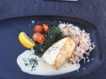 My daughter and I ordered the halibut and chips, my wife ordered the CAB Sandwich (free range chicken, avocado, and bacon), and my son ordered the baked halibut (rice pilaff, sautéed kale, and a lemon dill sauce).