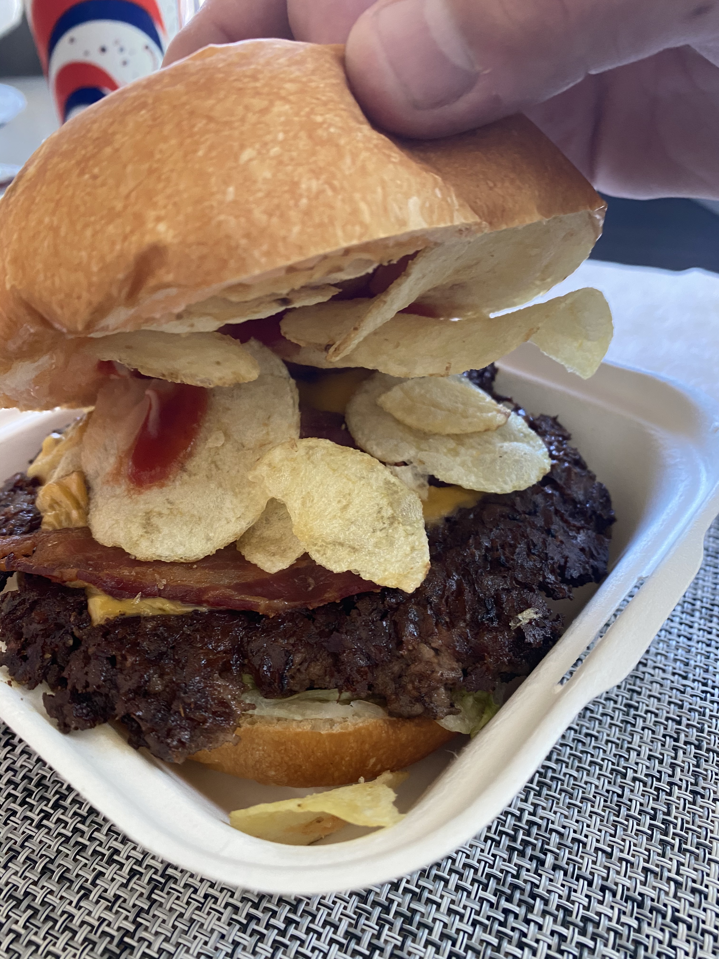 My daughter ordered the Hangover Burger for $10.25. It is a beef patty, pickles, ketchup mustard between two (2) grilled cheese sandwiches. It was delicious. The grilled cheese was an amazing addition to the burger. She said the pickles were amazing with the grilled cheese, she said that she would order this burger again.
