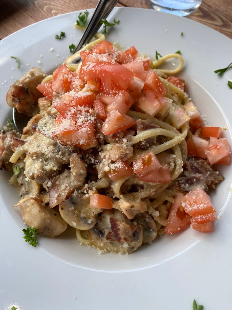 My wife ordered the Linguine Pollo Mondo for $20 and it was delicious. She said it had really good flavour and it was super saucy which was a huge bonus. Overall it was really good.