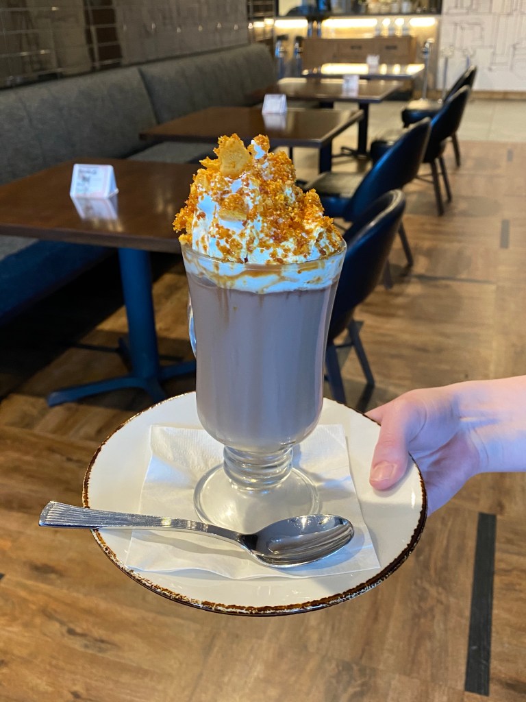 This hot chocolate was really good, it had a great creamy texture and the whip was really good. The honeycomb was delicious and super flavourful. The truffle pop was really good and a great combination to the hot chocolate. We would have loved to be able to purchase the honeycomb so that we could enjoy it by itself at a later date.