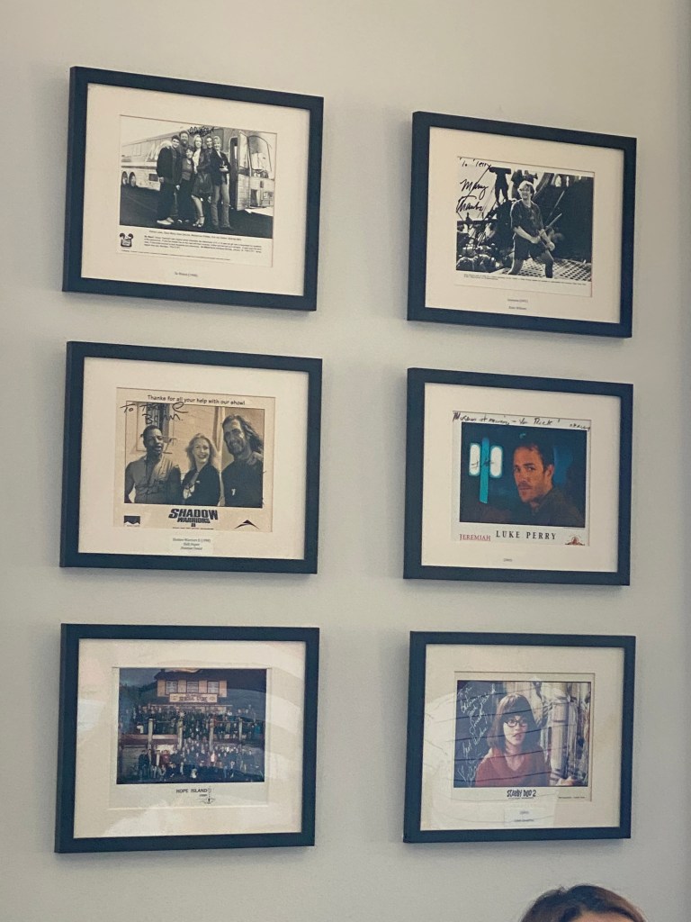 You walk through the entrance of the museum to get to this cafe, on the walls there are a ton of images of all the famous people that had visited this cafe. There were a lot of them too. There were a couple tables with people sitting, but we had just grabbed our to go so that we could continue on our trip.