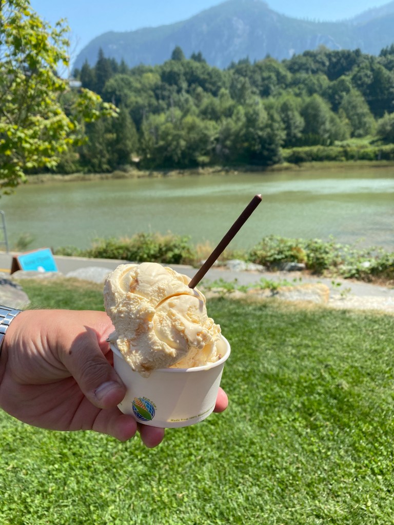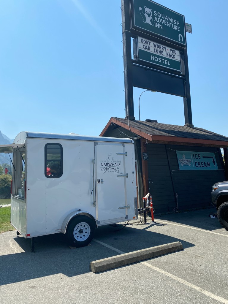 While in Squamish we had to check out this little ice cream trailer off the highway by the river. If you were not looking for this little trailer you would not be able to find it since you have to go down on a side road without knowing about it.
