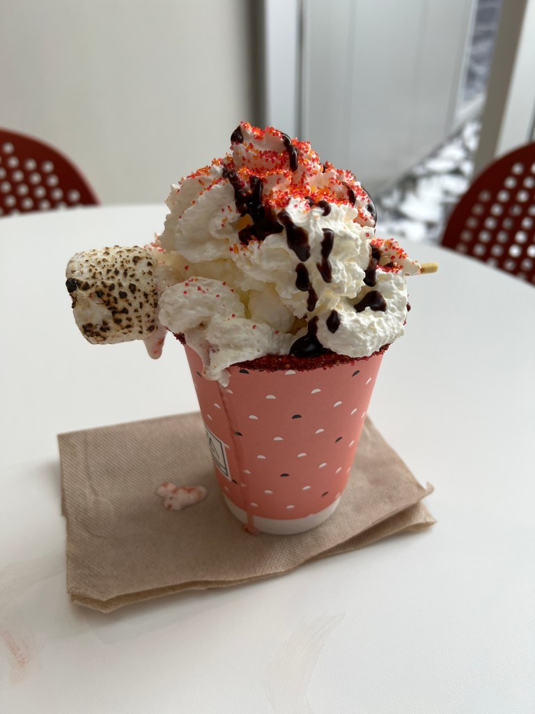 This hot chocolate was super fun and creative as well as super delicious. The meteor marshmallow was toasted perfectly and attached to a strawberry pocky. The whip was homemade and really good as well as the chocolate drizzle made it look like the galaxies. The flavour of the hot chocolate was good, even for steamed hot chocolate. This will be a kid friendly one for sure.