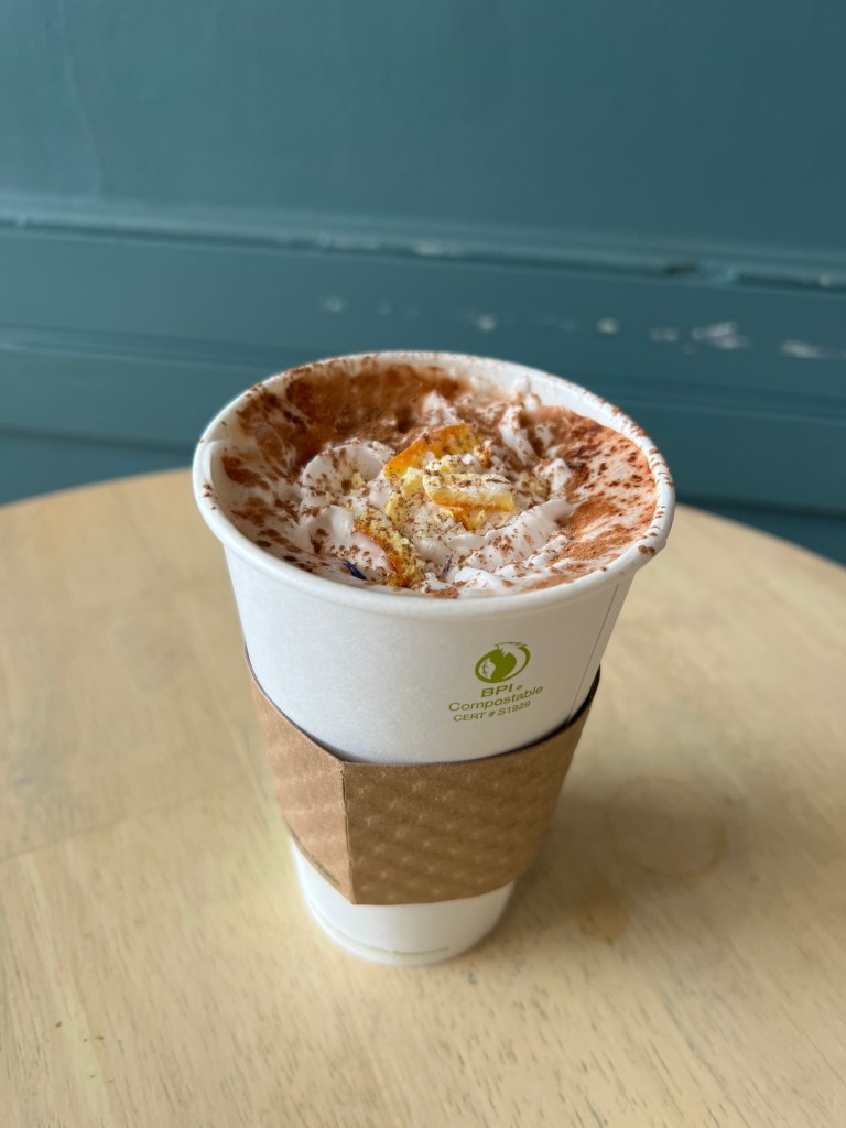 This hot chocolate is had a good orange flavour that comes from their Andalusia Tea Syrup. They use their tea to create the syrup used for this hot chocolate. To our surprise this was a creamy, orangey, smooth hot chocolate that was delicious. They only thing we were disappointed about was it didn’t look like the picture, nor did it look like the people ahead of us either. It was sad that they used canned coconut whip cream, but if this is something they don’t normally have, that is fine. Overall the drink was very good and its completely vegan which is always a bonus for sure.