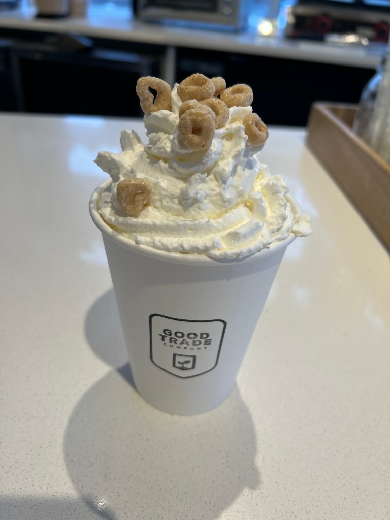 I am sad to say that we didn’t get any of the honey drizzle on our hot chocolate this morning, but overall we found this drink a little sweet for our liking. Which will happen with the cereal milk. You do get the flavours of the honey nut cereal throughout the drink. Overall it was very good but I am sad I didn’t get the drink like it was described.