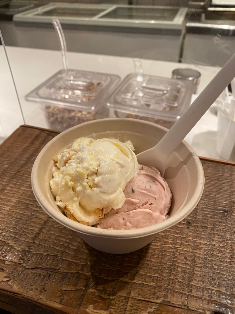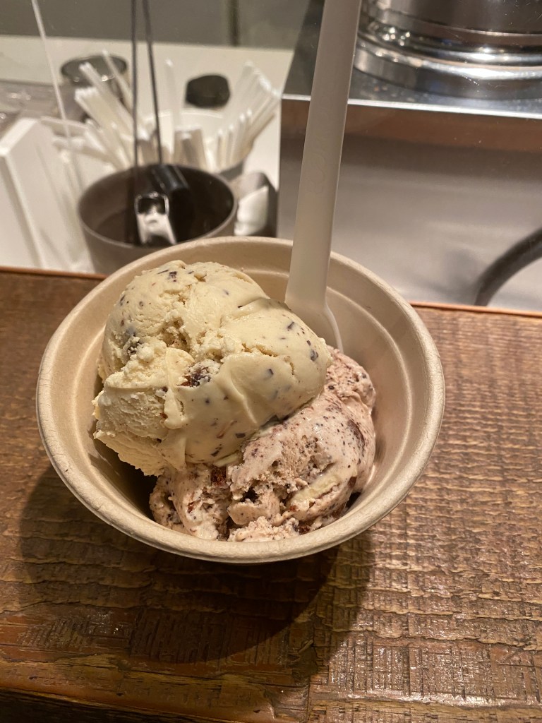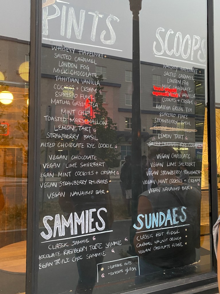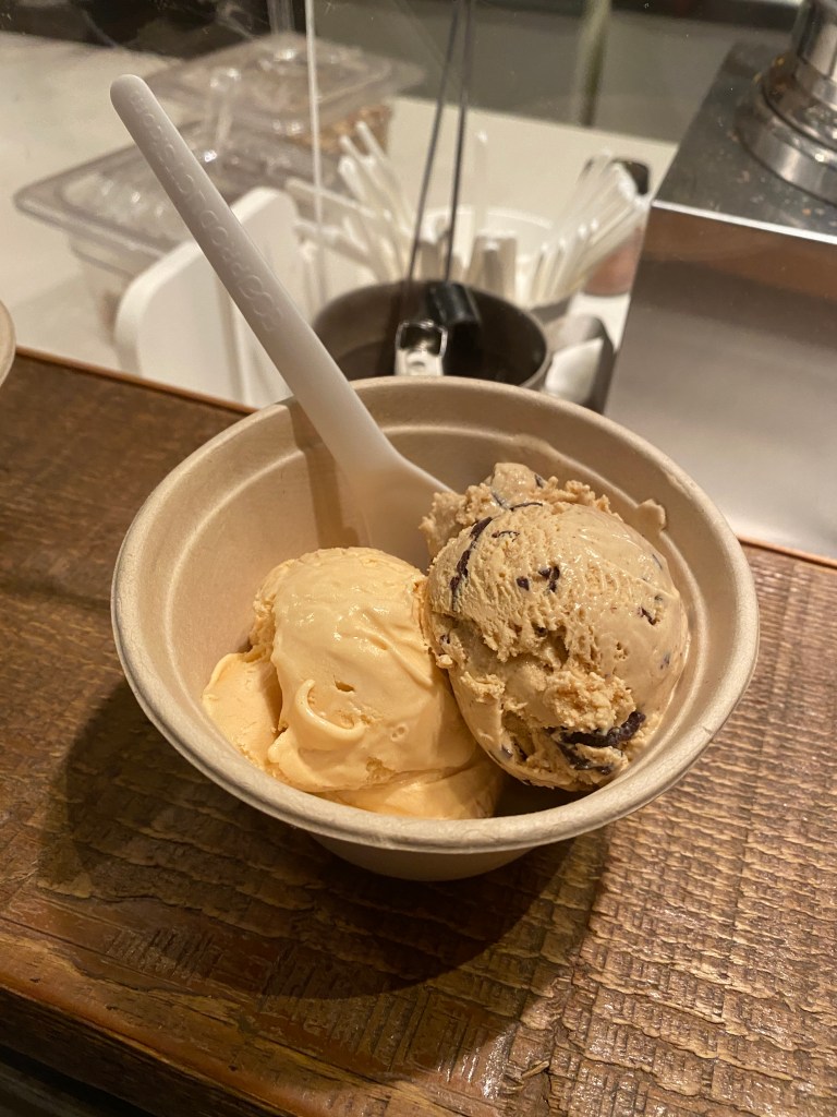 After looking at their flavours and sampling a couple, we decided to each get two scoops so we can try more this way.