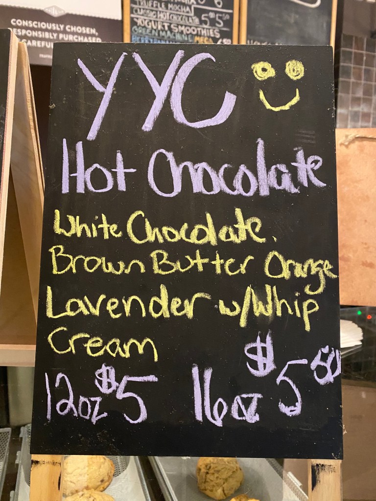 We went in a little worried about this drink because lavender, lavender can be either done right or done really wrong. Thankfully this hot chocolate was done really well. It was amazing! The lavender and orange is a great pairing and the addition of the whip was a nice subtle vanilla hint.