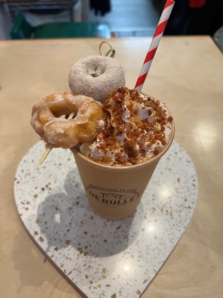 “You know that awesome warm feeling in your chest you get when you take a drink of your favourite bourbon? Well, that is a Bourbon Hug! This year’s recipe is a modern take on this great spirited hot chocolate. House-made dark chocolate syrup and salted caramel are steamed to perfection with milk and cream (or dairy alternatives) and finished with our signature roasted house-made vanilla marshmallow, caramel drizzle and salt flakes. The perfect combination of sweet and salty.”